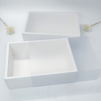 Caja de regalo deslizante con logotipo personalizado con acabado plateado/dorado mate transparente manga esponja marco de fotos laminación carpetas de cartón