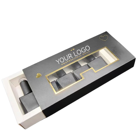 Emballage de panneau à ongles personnalisé fenêtre transparente logo haut de gamme matériaux recyclés laminage mat marquage à chaud pour cosmétiques gaufrage