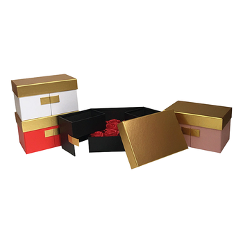 Rectangular Tri-Layer Rotating Flower Gift Box Embossed Design Cardboard UV Finish for Birthday Valentine Chocolate/Earring